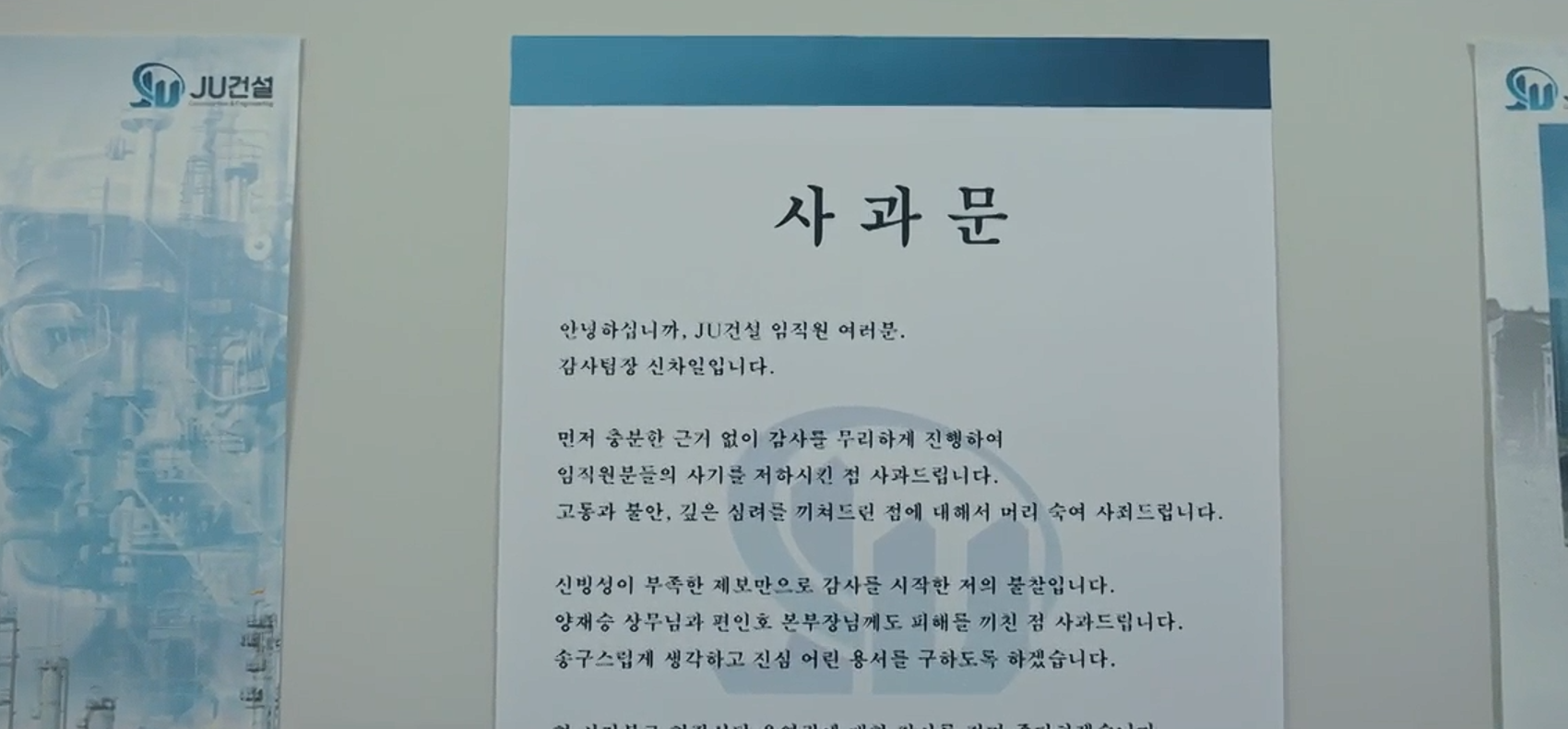 사내 게시판에 사과문을 게재하고 이번 감사는 마무리하고자 합니다.