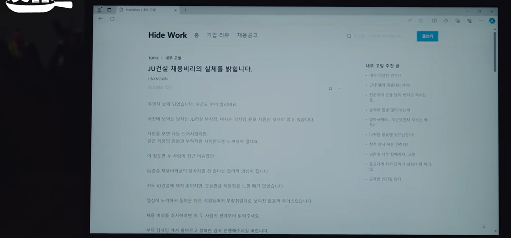 인터넷을 떠도는 JU건설의 입사비리 이야기들