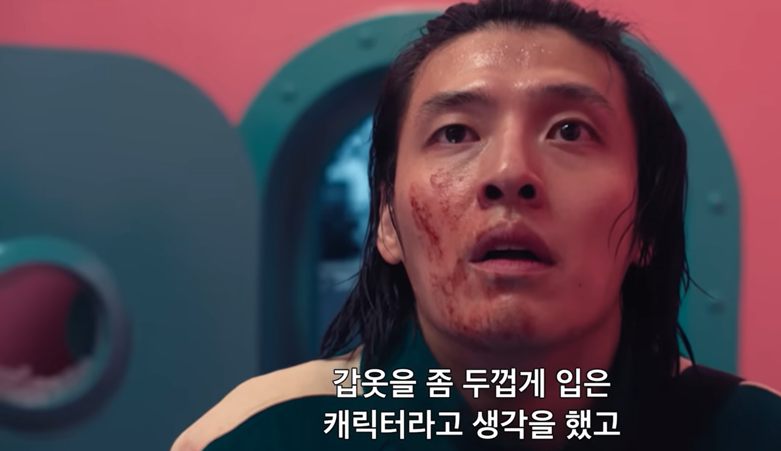 기훈(이정재) : 힘없고 전략도 없는 사람이지만 이런 게임이 더 이상 있으면 안 된다는 생각에 게임에 다시 참가하게 됩니다.