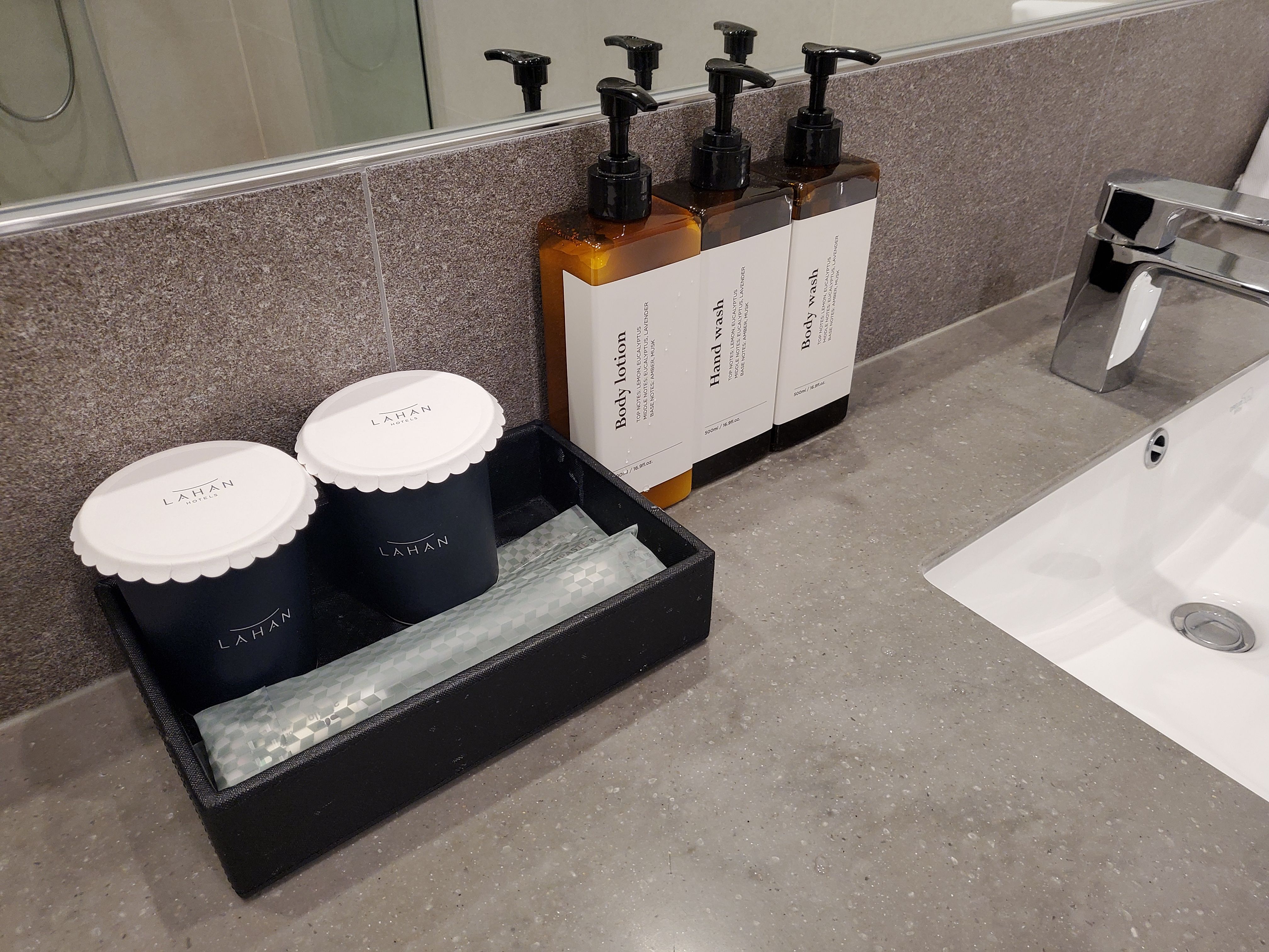 1층 로비의 빨간 로고 앞에서는 아이들이 모여 사진을 찍고 있습니다. 체크인하는 사람이 많아서 그런지 식당처럼 태블릿에 핸드폰번호를 입력하고 순서를 기다렸습니다. 앞에 10팀정도 있었는데 5~10분 후에  체크인했습니다. 저는 디럭스 트윈 시티뷰를 예약했는데 욕실에 욕조, 샤워부스를 선택할 수 있었습니다.