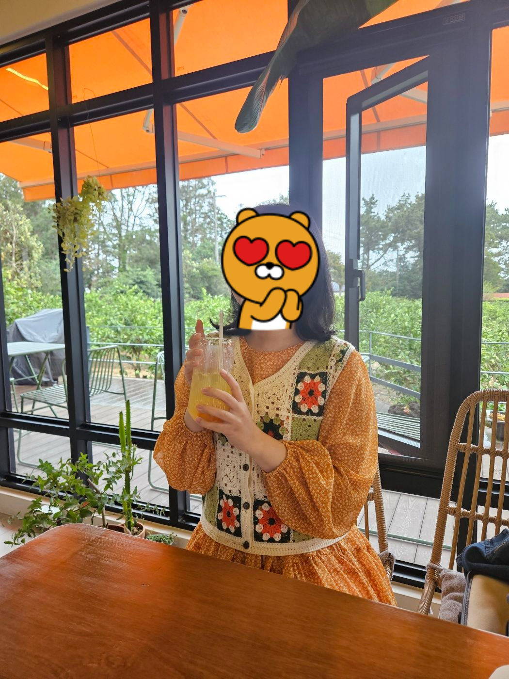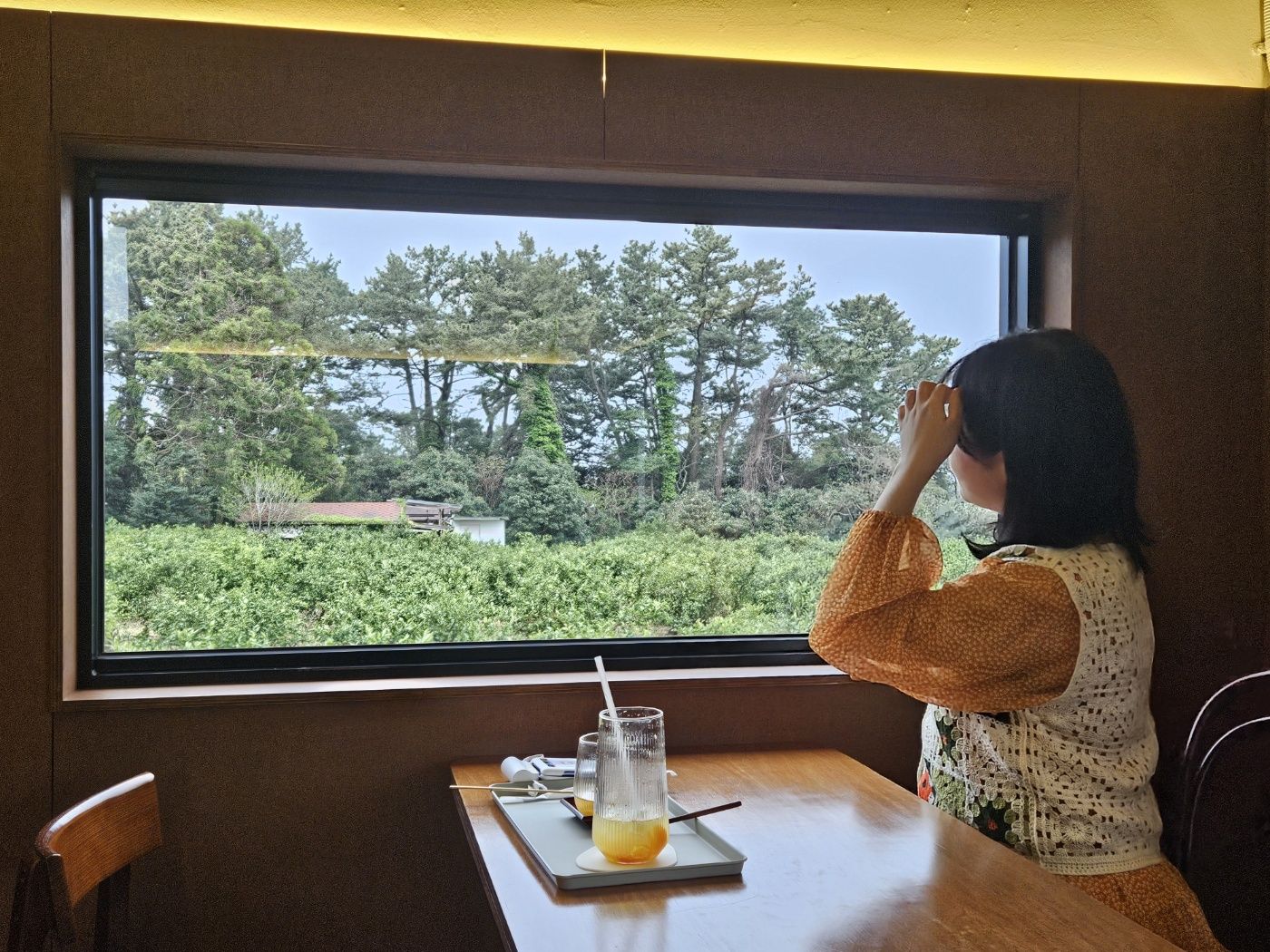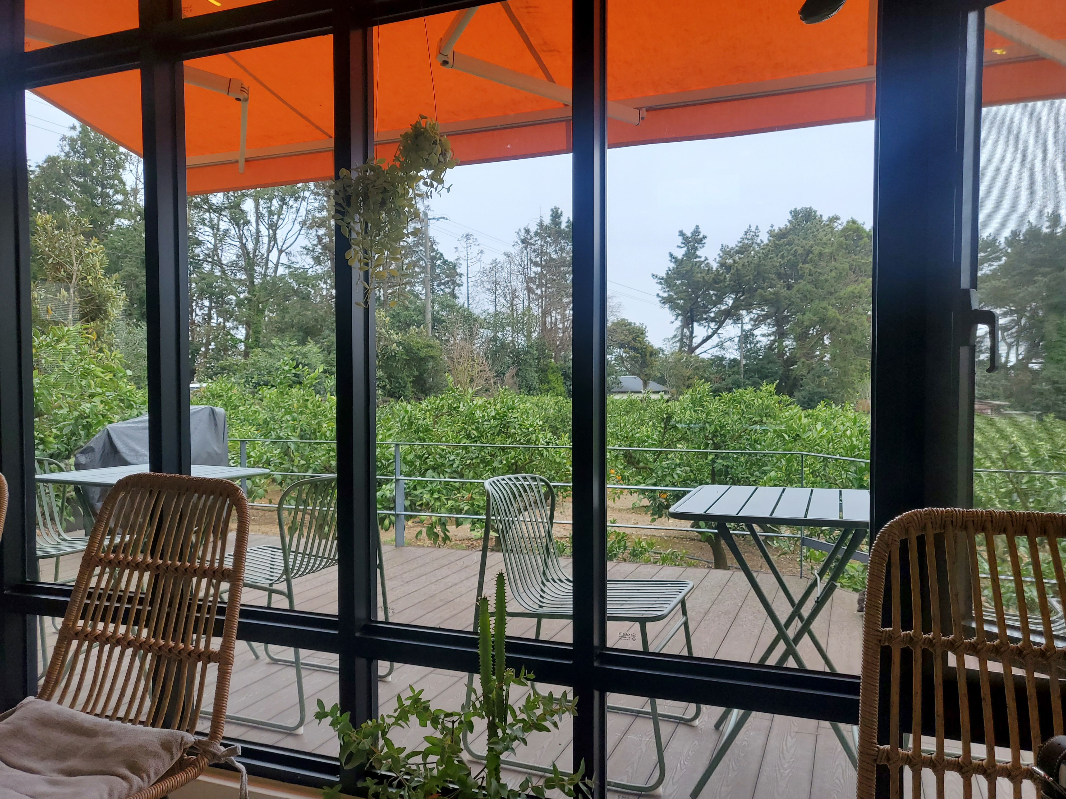 주황색문, 우드인테리어, 귤나무뷰(귤열매는 없는 시기였지만)
