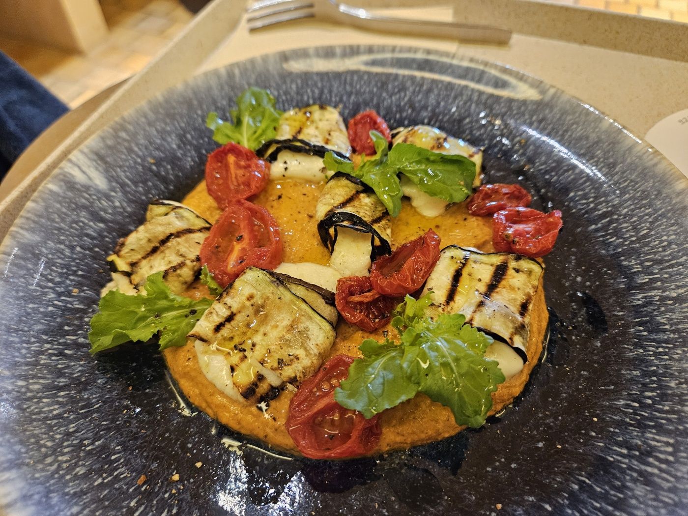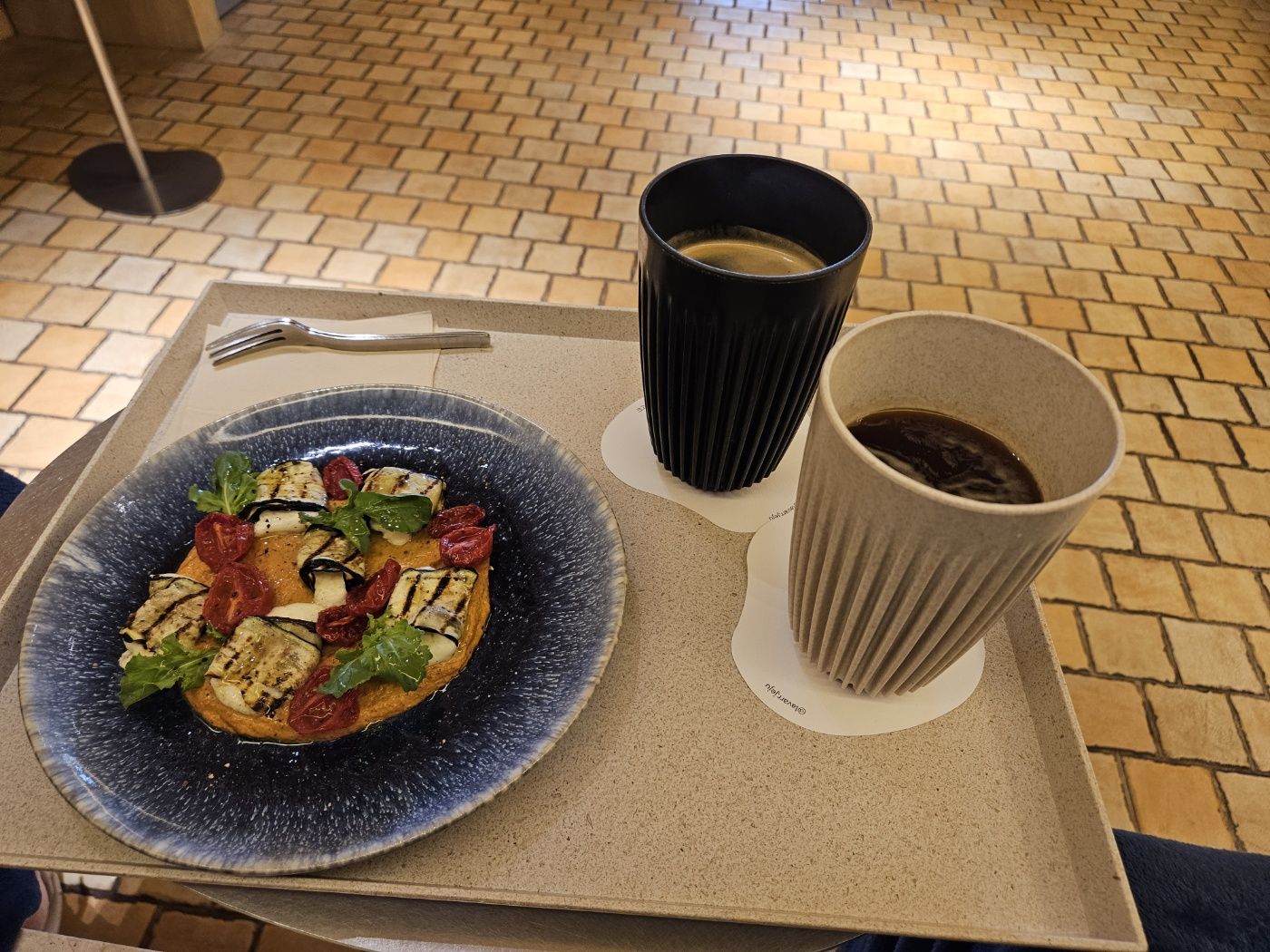 우리가 주문한 음식은 Toast Eggplant Prosciutto(구운 가지 프로슈토)와 커피였습니다.