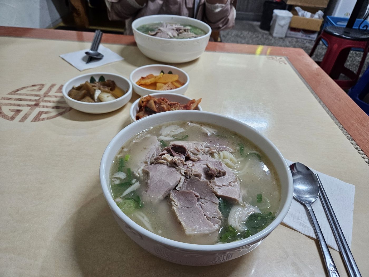 잠시 후에 사장님이 가져다주신 고기국수는 일단 한눈에 봐도 고기가 푸짐해서 만족스럽고