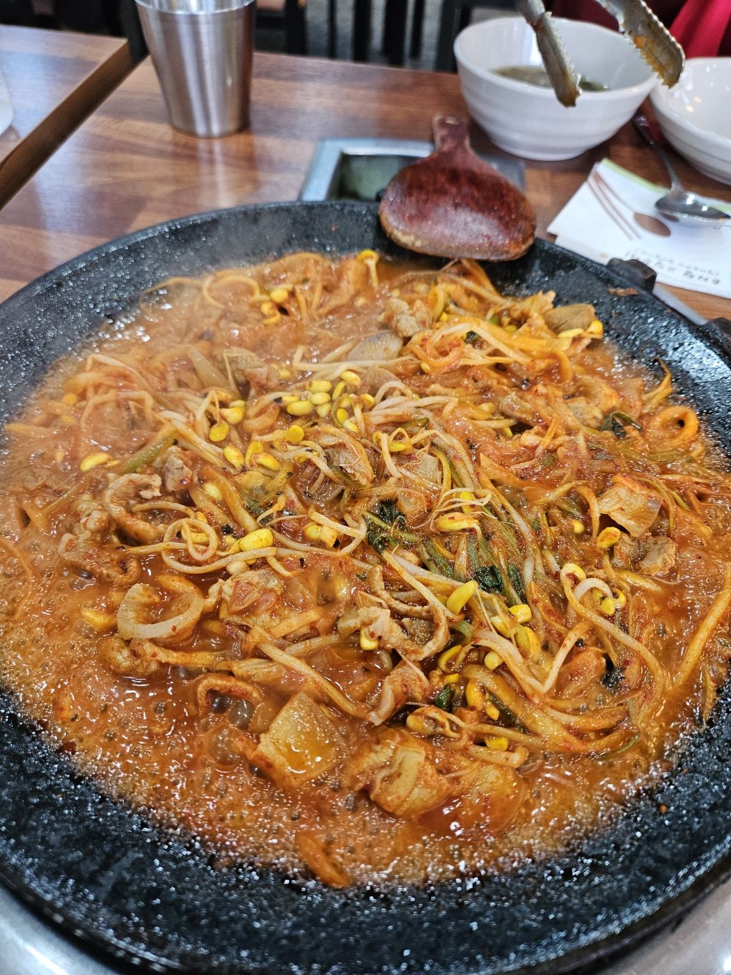 식탁에서 보글보글 끓이는 두루치기는 특히 느끼하지 않은 양념으로 감칠맛을 더해주었고요