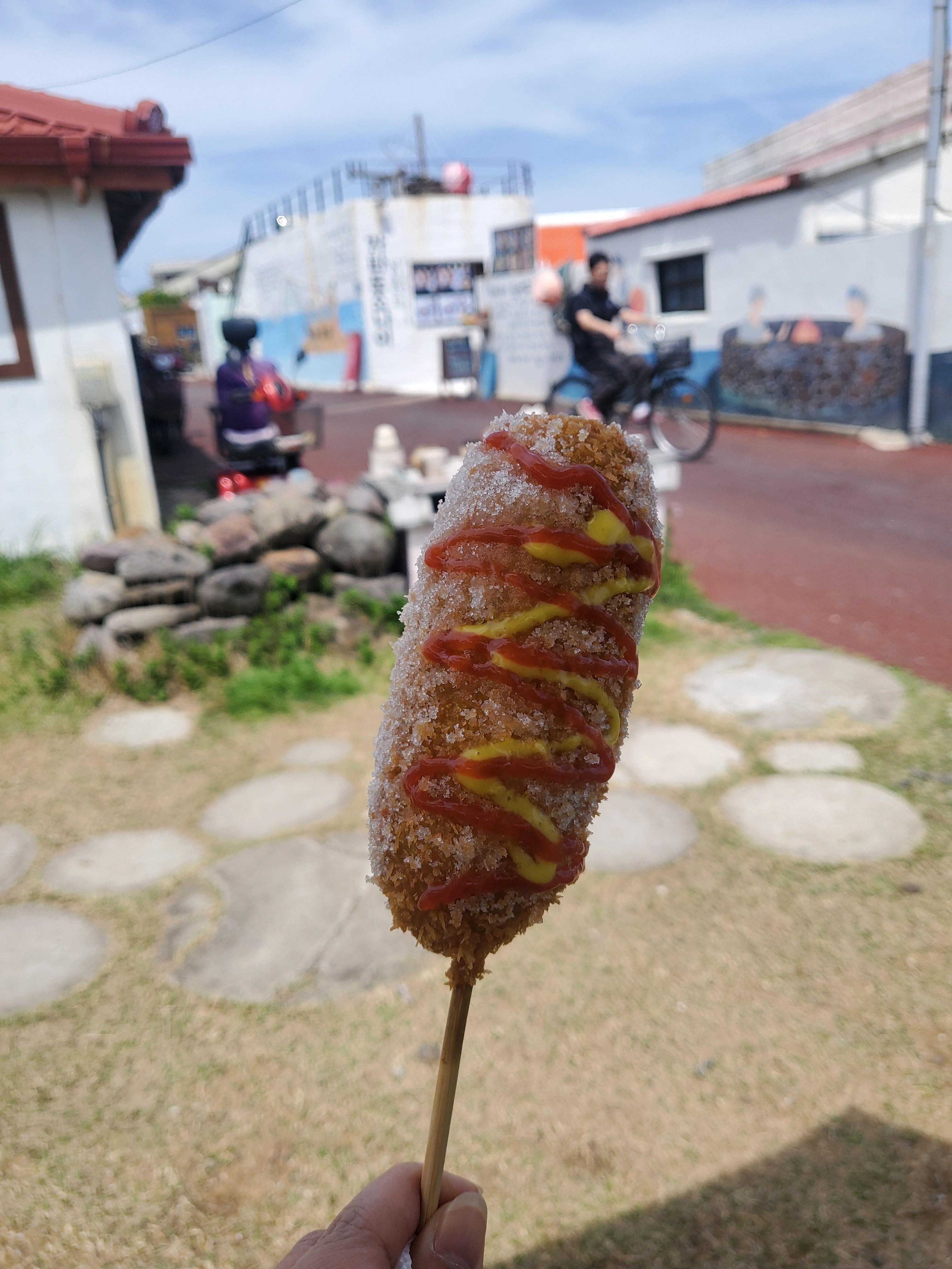 섬을 둘러보다가 출출할 때쯤 빠질 수 없는 간식이 있습니다. 시원하고 고소한 청보리 미숫가루와 반죽에 청보리가 들어간 핫도그.. 하나만으로도 만족스럽고 든든하답니다.