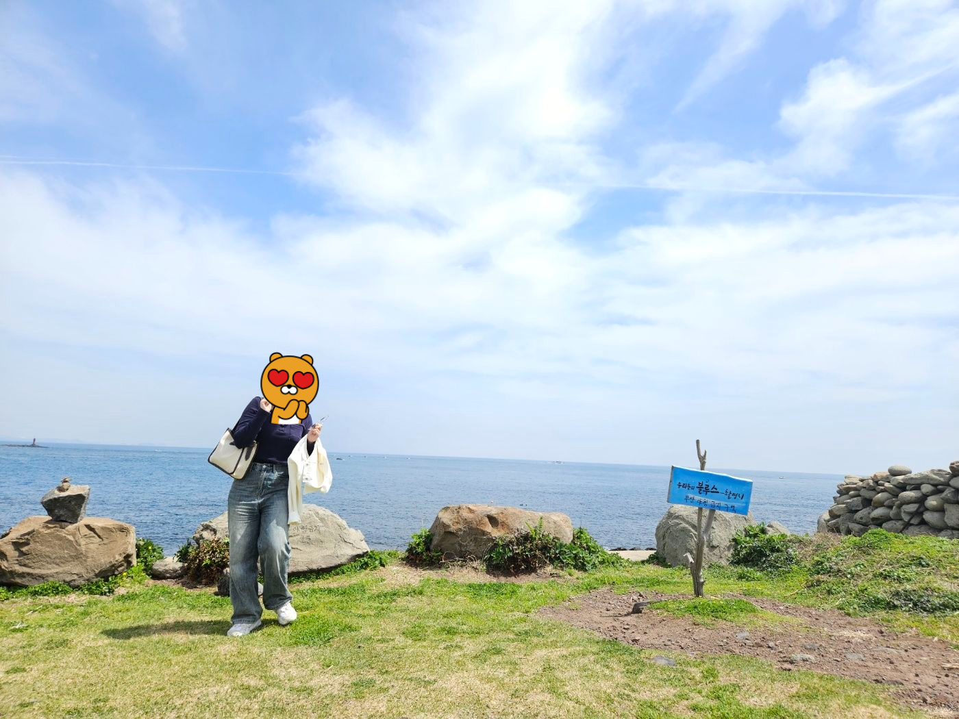 제주를 배경으로 한 드라마가 많죠? 그중에서 "우리들의 블루"에서 "정준(김우빈)"과 "영옥(한지민)"이 가파도로 놀러 간 장면이 있습니다. 섬에서 자전거도 타고 맛있는 간식과 와인도 먹고. 바로 그 장소가 가파도입니다. 그곳에서 사진 한컷 찍으며 한지민이 된 것처럼~~