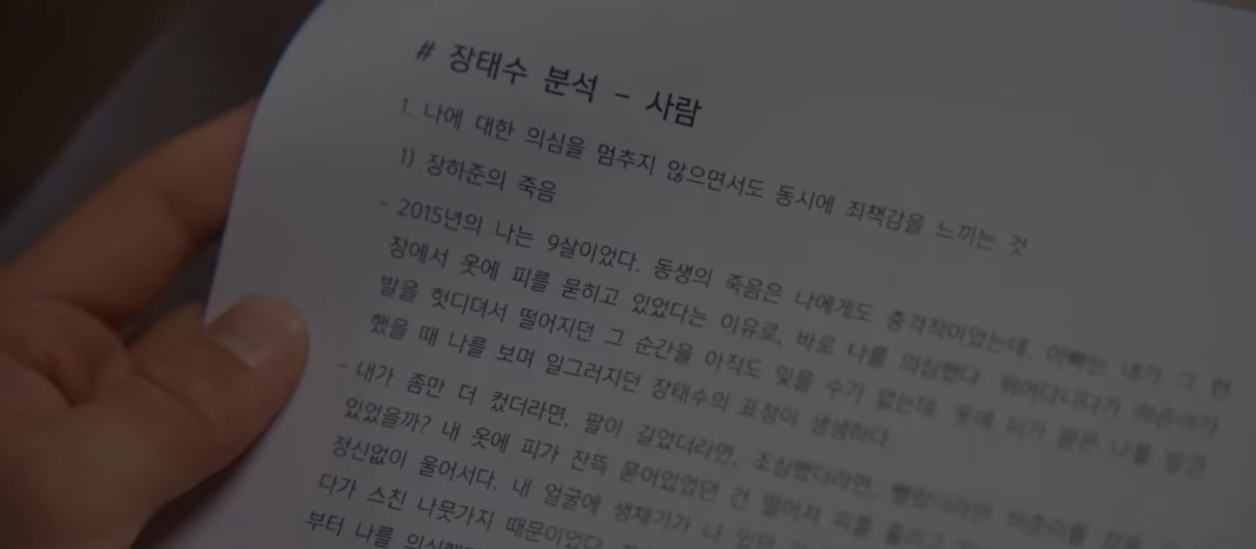장하빈은 아버지 장태수가 자신을 의심할 것과 결국은 자신을 구하게 될 것까지 모두 계획에 두고 있었습니다. 사건에 연루된 뒤 경찰 조사 상황까지 철저히 예측해 둔 하빈의 파일을 통해, 주변 사람들을 조종하고 완벽한 살인을 계획했던 하빈의 치밀함이 드러났습니다. 어진(한예리 분)은 이를 보고 경악했으며, 시청자들은 하빈의 모습에서 섬뜩함을 느꼈습니다.